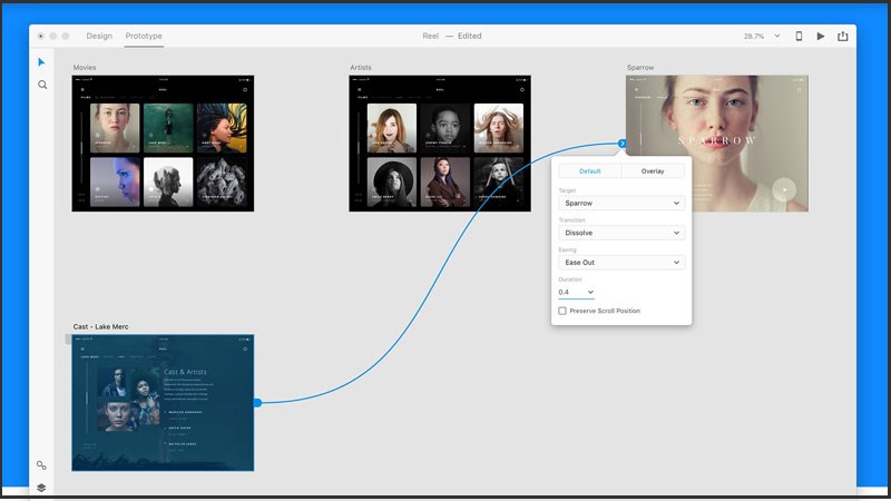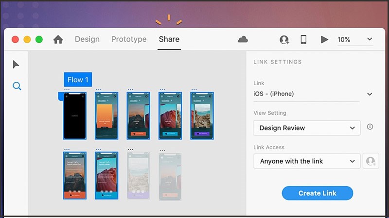 Đây là một tính năng xem trước bản vẽ thiết kế web của bạn vô cùng tiện lợi, lúc này bạn sẽ có thể xem được sự hoạt động của các ứng dụng hoặc tạo liên kết giữa các artboard và những đối tượng đại diện cho màn hình trong ứng dụng.
