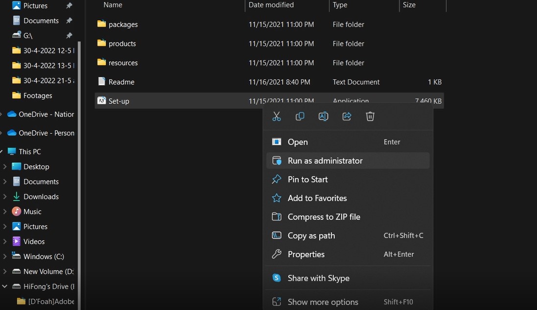 Bước 2: Chúng ta chuột phải vào file Set-up và chọn Run as Administrator
