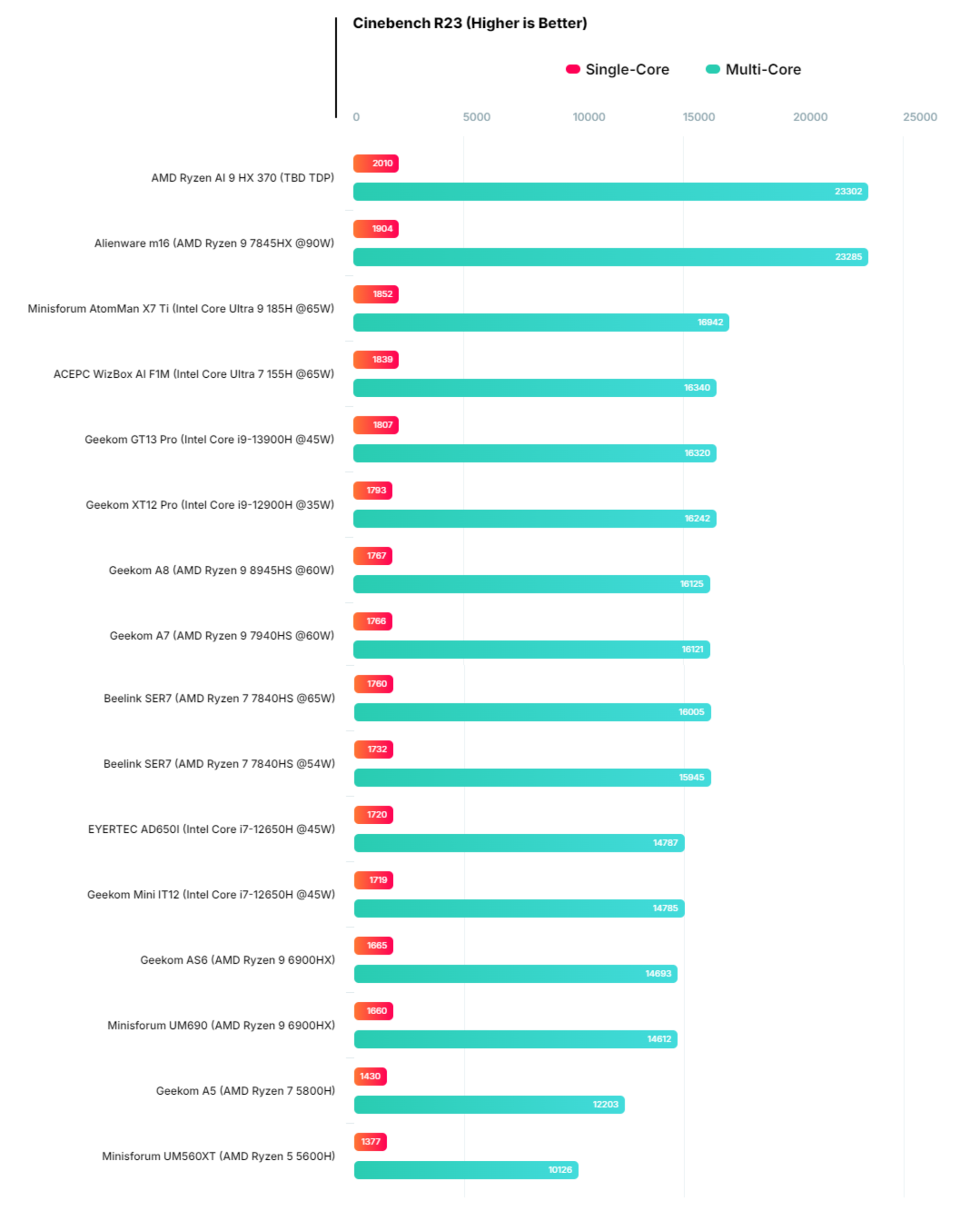 Về hiệu suất, APU AMD Ryzen AI 9 HX 370 "Strix" đạt 23.302 điểm trong các bài kiểm tra đa lõi và 2010 điểm trong các bài kiểm tra đơn lõi. Đây là những kết quả hiệu suất tuyệt vời khi giúp APU Strix vượt 44% so với chip xử hàng đầu của nền tảng AMD Hawk Point (Ryzen 9 8945S) và vượt 38% so vớ chip xử lý hàng đầu của dòng Meteor Lake (Core Ultra 9 185H) trong các bài kiểm tra đa lõi. Điểm số đơn lõi cũng tăng 14% so với AMD Hawk Point và tăng 9% so với CPU Meteor Lake.