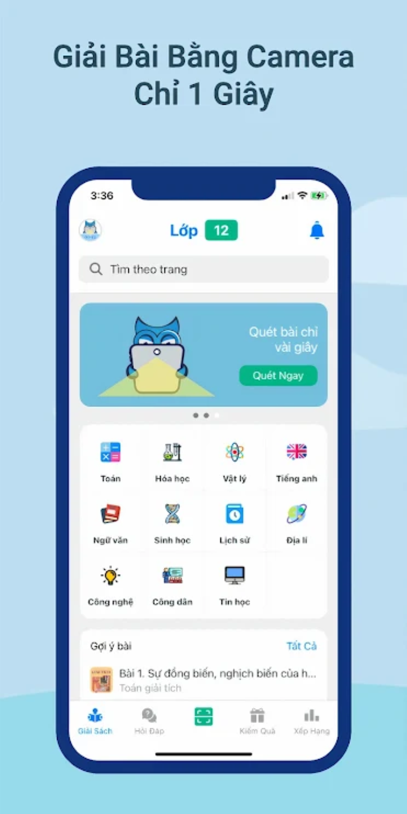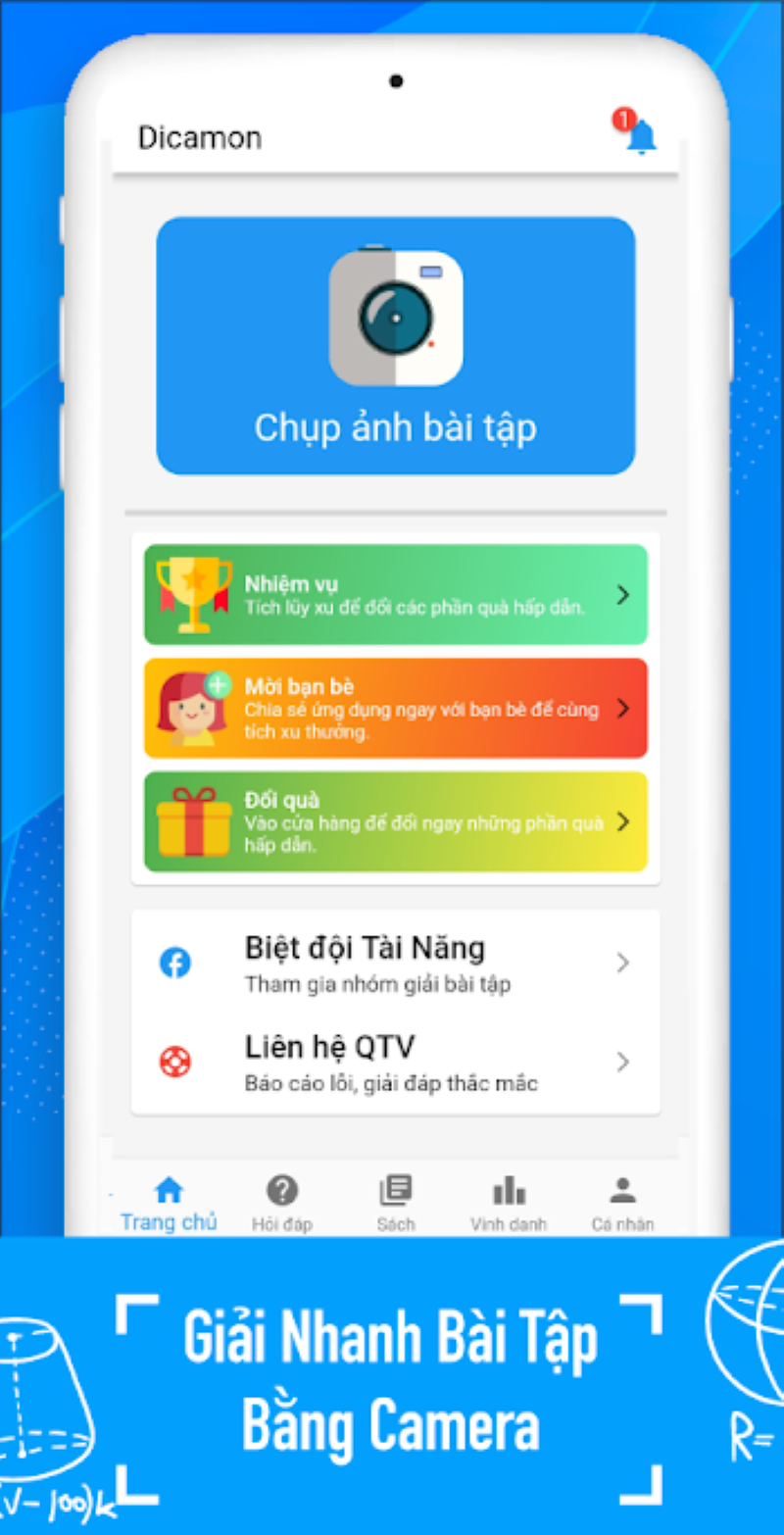 - Giải nhanh bài tập về nhà, bài tập trong sách bằng camera từ lớp 1 đến lớp 12.