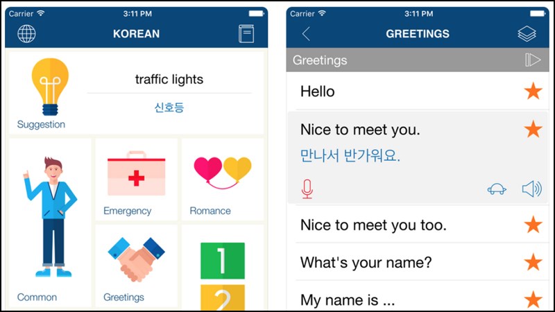 - Hơn 1000 mẫu câu giao tiếp sử dụng theo tình huống cụ thể để người dùng dễ dàng áp dụng.