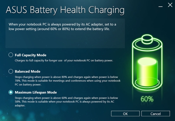 Đa số các laptop đều có tính năng ngắt sạc khi dung lượng pin trên 100%, một số hãng như Asus hay Sony cung cấp phần mềm chính hãng có các chế độ khác nhau để tối ưu tuổi thọ Pin laptop. Với các phần mềm “chăm sóc sức khỏe” cho pin này bạn có thể cắm sạc liên tục mà không sợ bị chai pin