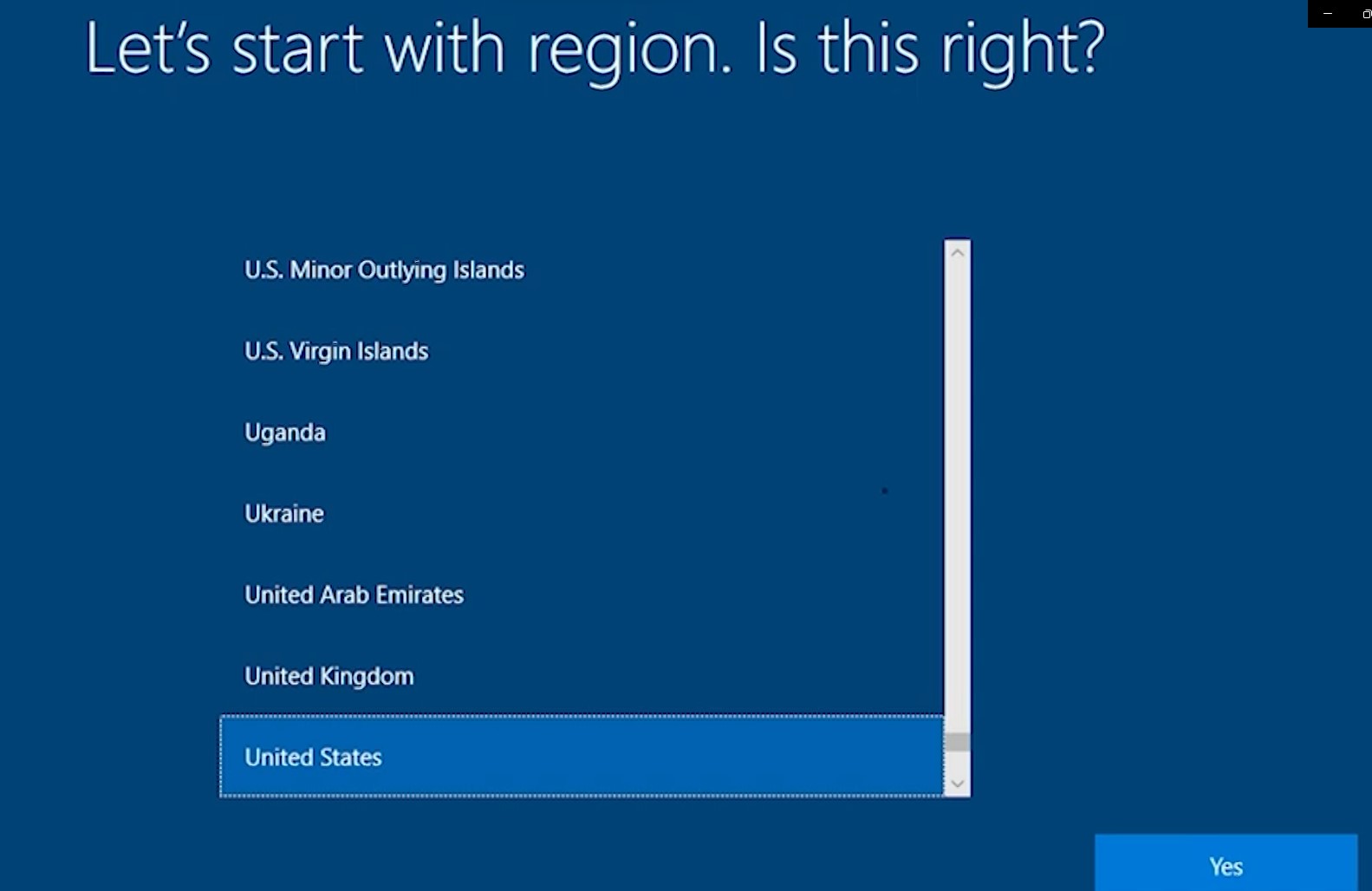 Bước 1: chọn quốc gia rồi ấn Yes, sau đó tiếp tục Skip các thiết lập chúng ta chưa cần quan tâm tới