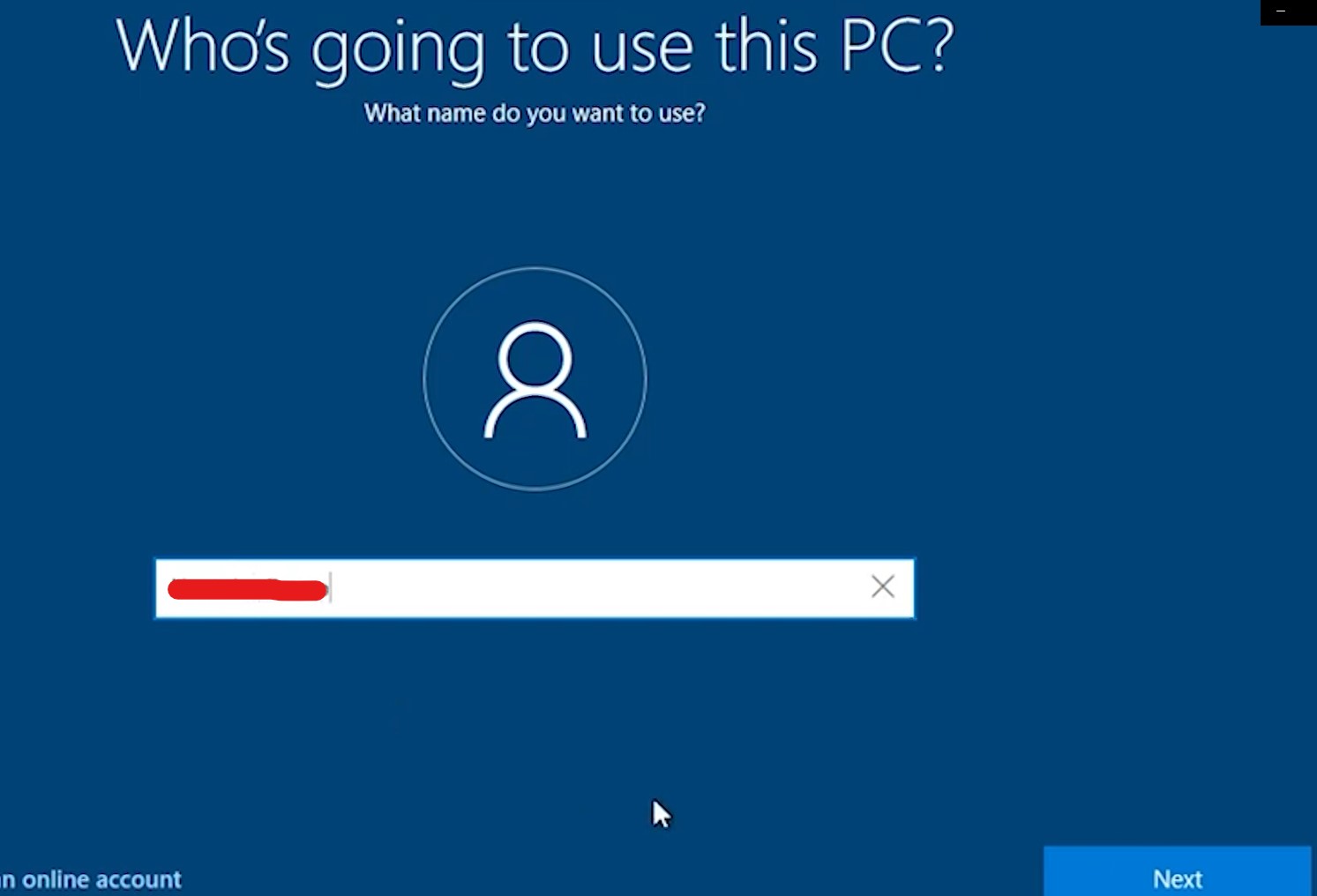 Bước 4: Đặt tên tài khoản sử dụng máy tính rồi ấn Next.