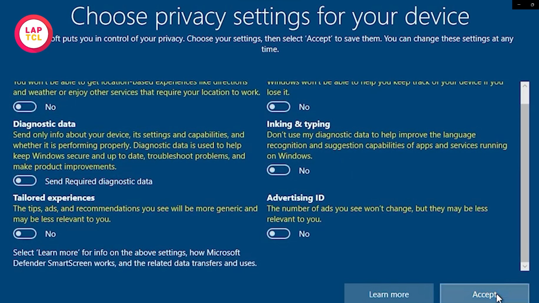Bước 7: Xuất hiện một số tuỳ chọn giúp bạn tăng cường bảo mật. Click vào Accept để chấp nhận.