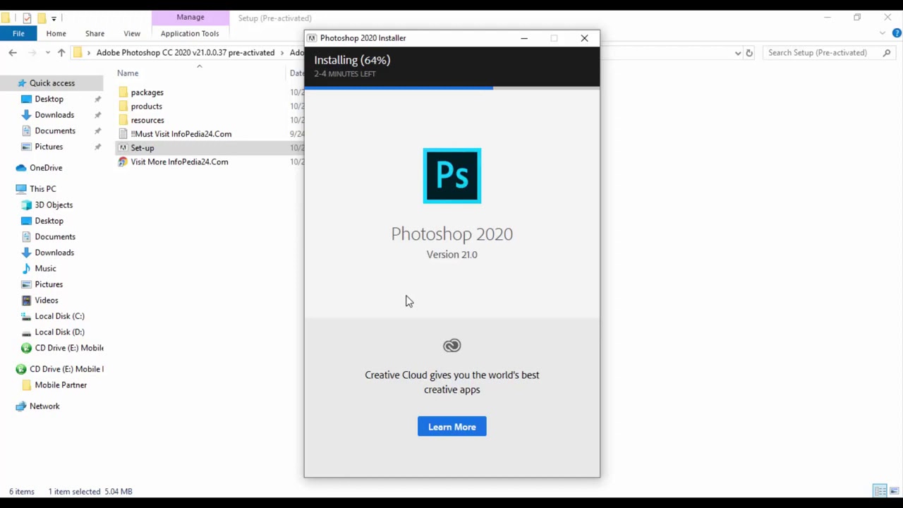 Do phiên bản Photoshop portable 64bit không cần cài đặt trên máy. Nên bạn chỉ cần đợi máy tính giải nén xong là có thể thoải mái sử dụng.