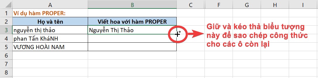 1. Sử dụng hàm PROPER