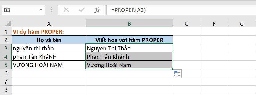Công thức hàm PROPER: