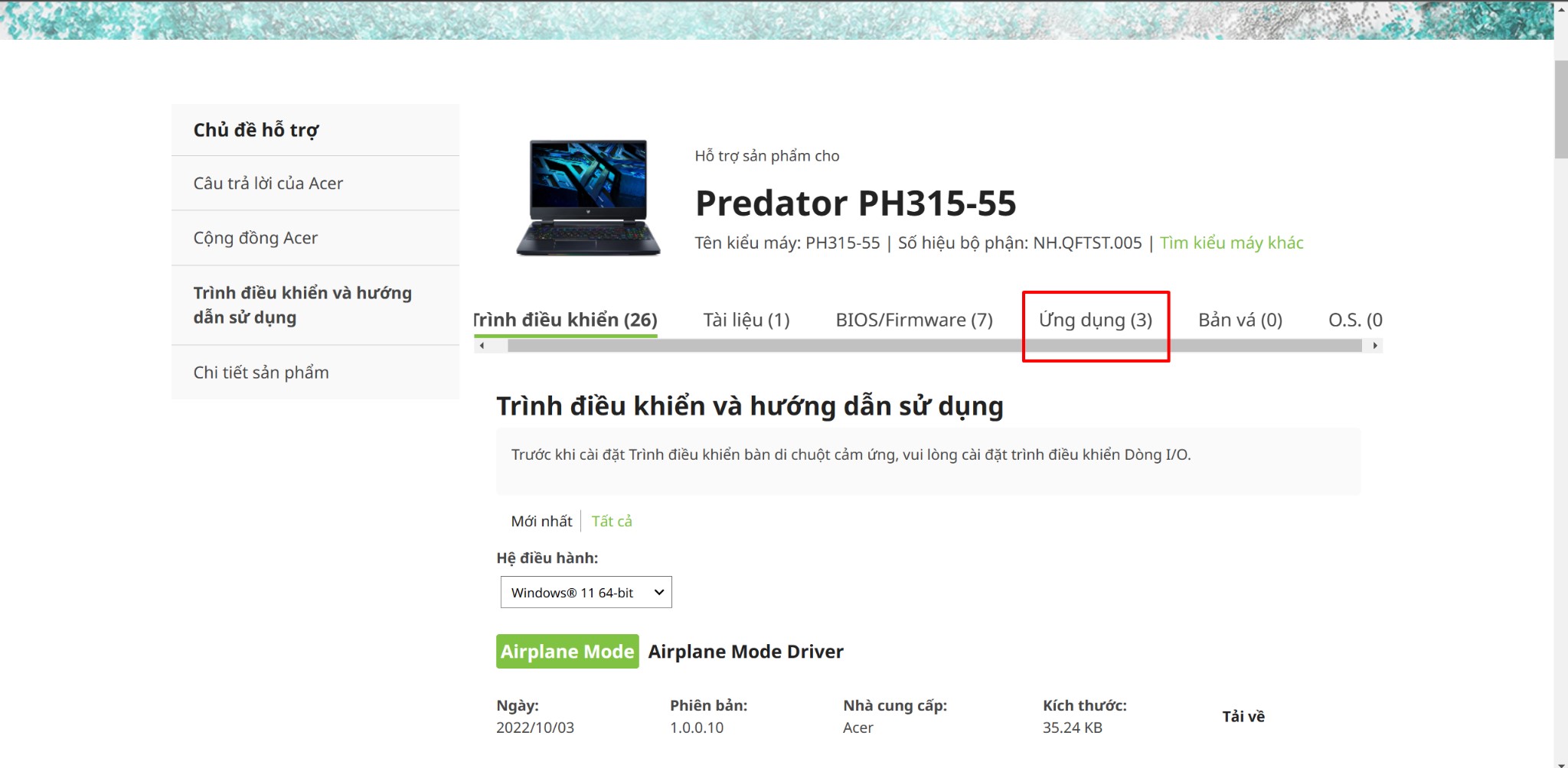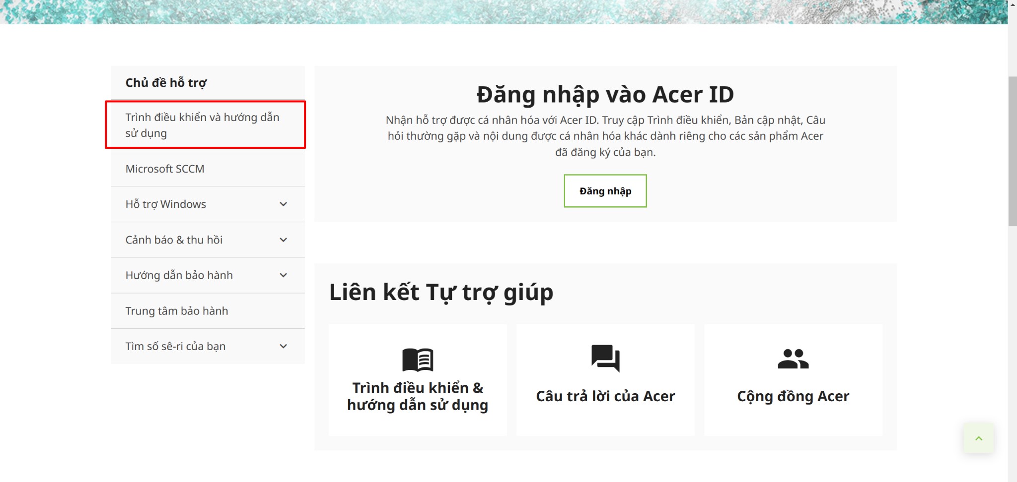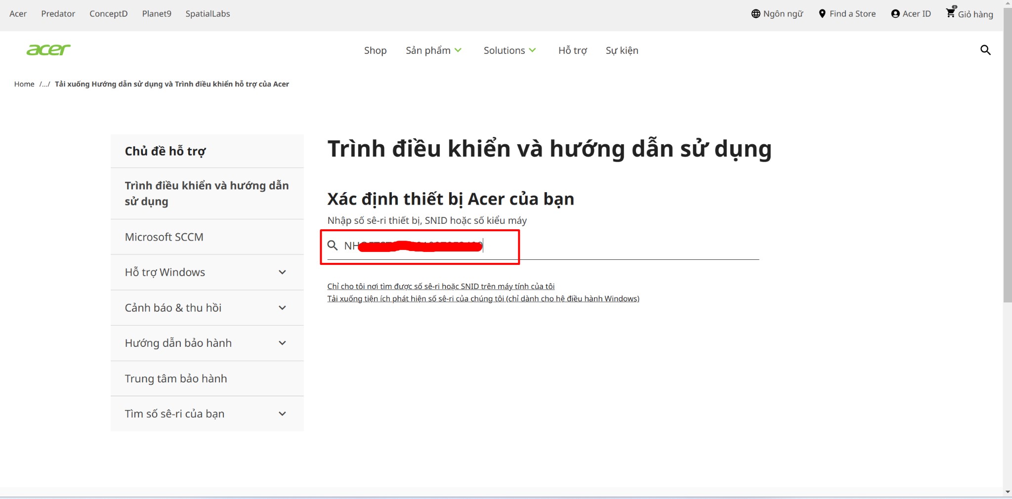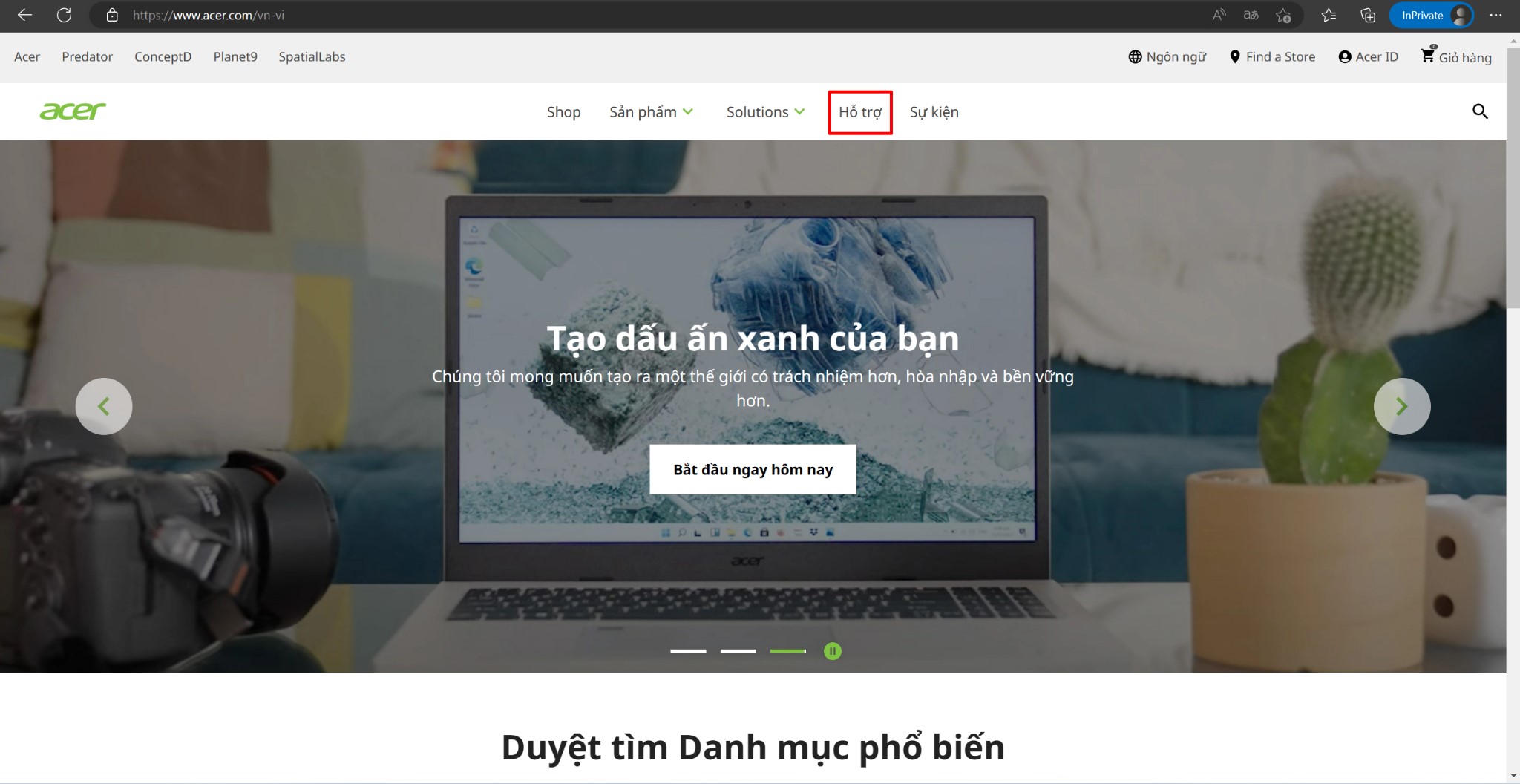 Bước 1: Truy cập vào trang chủ của Acer tại đây