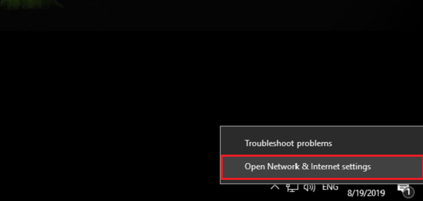Bước 1: Click chuột phải vào biểu tượng wifi hoặc là mạng LAN và chọn Open Network & Internet settings