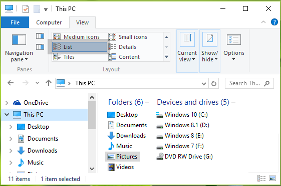 Bước 2: Trong tab View trên thanh công cụ, bạn chọn List để chọn chế độ mặc định khi xem.