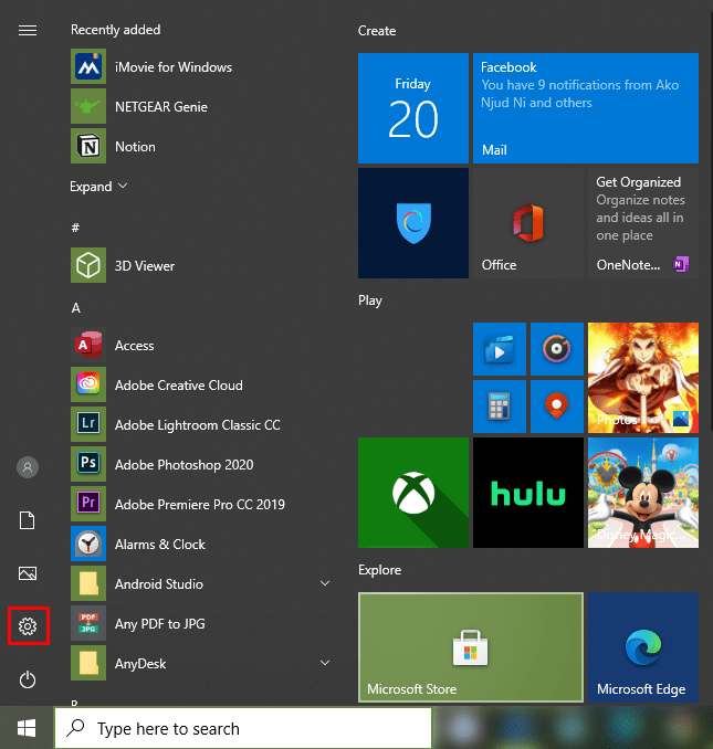 Bước 2: Chọn vào mục Settings (có biểu tượng răng cưa)