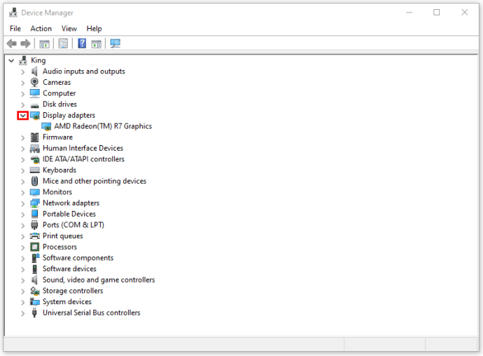 Bước 3: Nhấn chuột phải vào mũi tên ở cạnh Display adapters để mở rộng