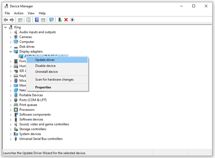 Bước 4: Nhấn chuột phải vào tên card màn hình mà laptop bạn sử dụng