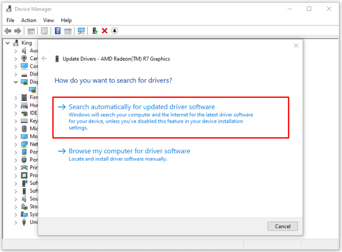 Bước 6: Sau đó chọn tiếp “Search automatically for updated driver software”