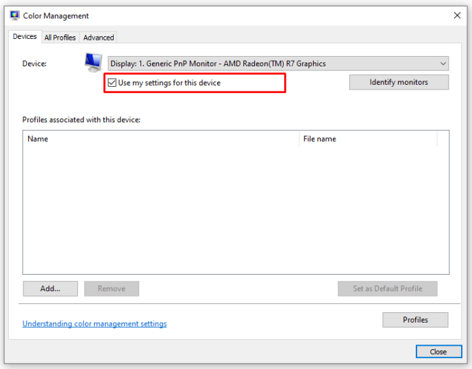Bước 2: Trong ô cửa sổ Devices, bạn tick chọn “Use my settings for this device”