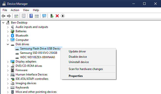 Bước 2: Xác định vị trí ổ cứng mà bạn đang gặp vấn đề, nhấn chuột phải rồi chọn Uninstall Device.
