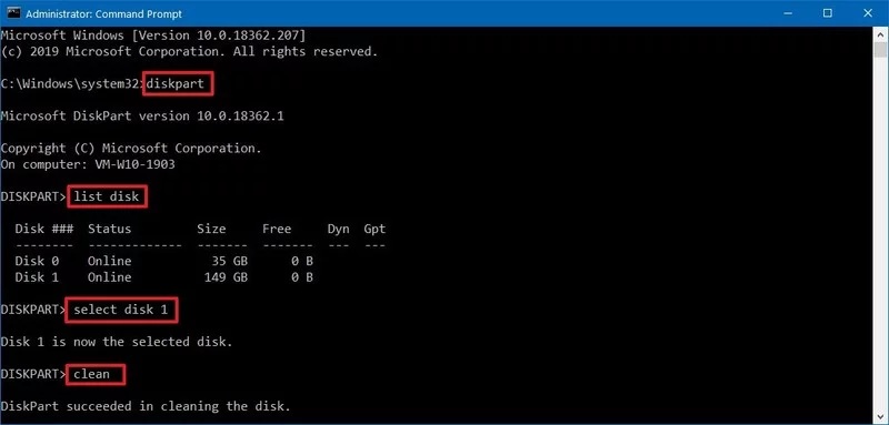 Cách 4: Sử dụng lệnh Prompt và lệnh Diskpart