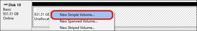 Bước 3: Khi cửa sổ mở ra, bạn click chuột phải vào ổ cứng bị Unallocated, sau đó chọn New Simple Volume
