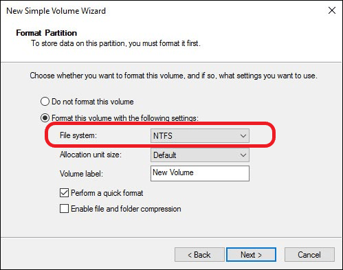 Bước 7: Click chọn NTFS rồi bấm Next. Như vậy là bạn đã hoàn thành việc định dạng cho ổ cứng ngoài. Bạn thực hiện thao tác khởi động lại máy là xong.