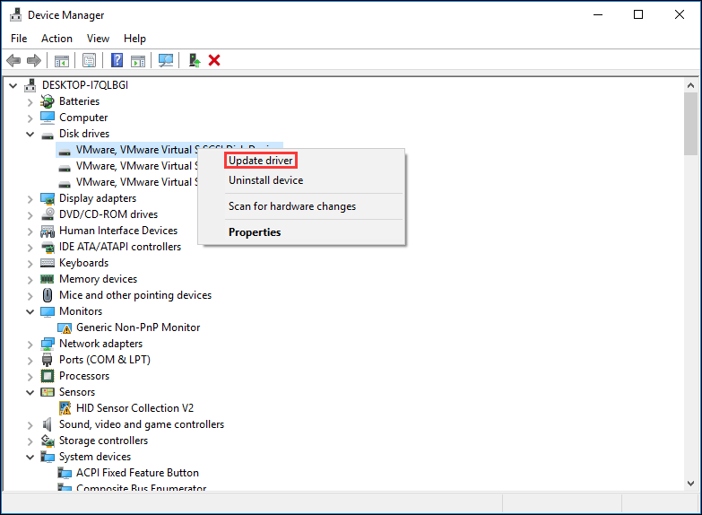 Bước 2: Xác định ổ cứng đang gặp vấn đề rồi click chuột phải chọn Update Driver