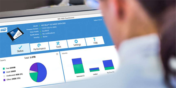 Giám sát bằng khả năng sẵn có, đo lường nhiệt độ hoạt động cùng với thuộc tính SMART và nhiều hơn nữa với bảng điều khiển SSD của Western Digital.