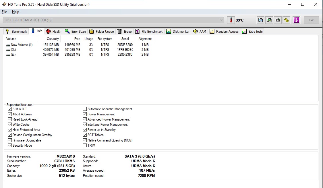 Người dùng cũng có thể biết được nhiệt độ của đĩa cứng đạt bao nhiêu,v.v..