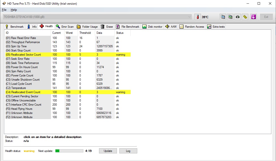 Chức năng này sử dụng S.M.A.R.T. (Công nghệ báo cáo và phân tích tự giám sát) để lấy thông tin về tình trạng của đĩa cứng.