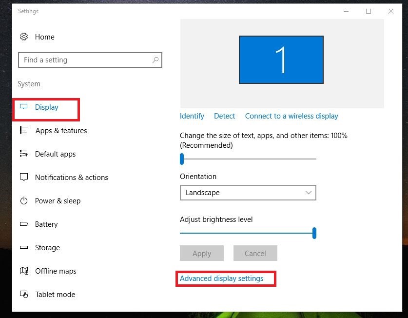 Bước 2: Chọn tab Display ở phía bên trái màn hình