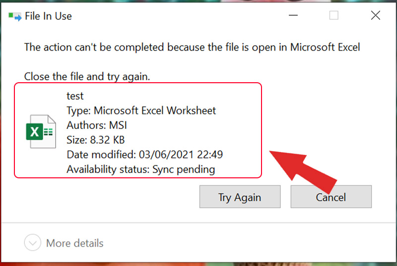 Sau khi chọn tệp, bạn có thể kiểm tra trạng thái của tệp. Nhấp vào nút thả xuống nhỏ bên cạnh nút Mở khóa và chọn hành động thích hợp.
