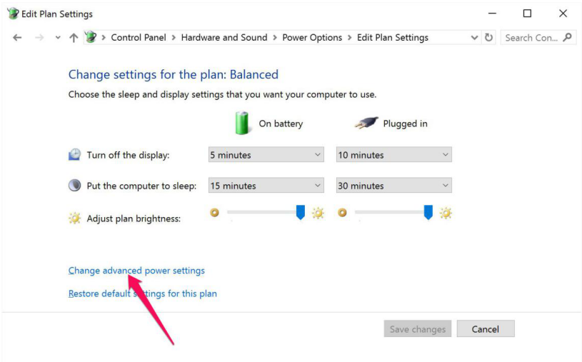 Tại cửa sổ mới hiện ra, bạn nhấn vào dòng Change advanced power settings.