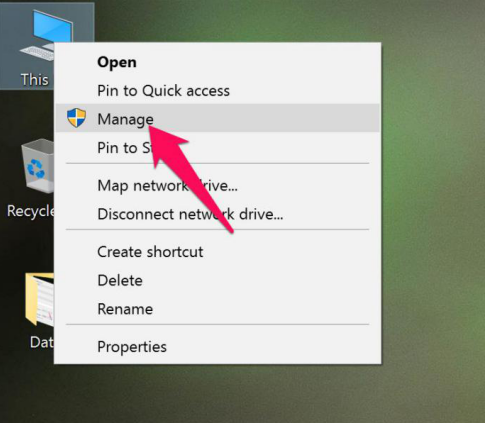 Hoặc bạn cũng có thể chọn chuột phải vào biểu tương This PC >> Chọn Manage. Nếu như Windows 10 của bạn không xuất hiện biểu tượng This PC ở ngoài Desktop, bạn có thể vào mục folder ở dưới thanh cộng cụ và tìm biểu tượng This PC ở bên trái thư mục Folder