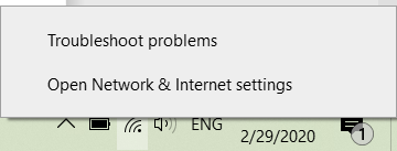 Bước 1: Nhấn chuột phải vào biểu tượng mạng trên thanh công cụ, chọn Open Network & Internet Settings