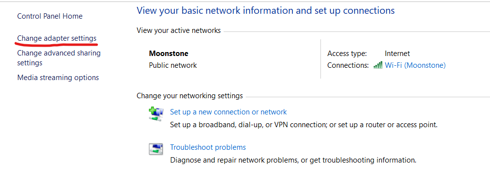 Bước 3: Chọn Change Adapter Settings