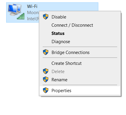 Bước 4: Click chuột phải vào mạng wifi đã kết nối, chọn Properties